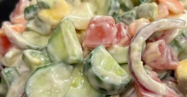 Ingredients Two big cucumbers, thinly sliced; one big red onion, thinly sliced; three big tomatoes...