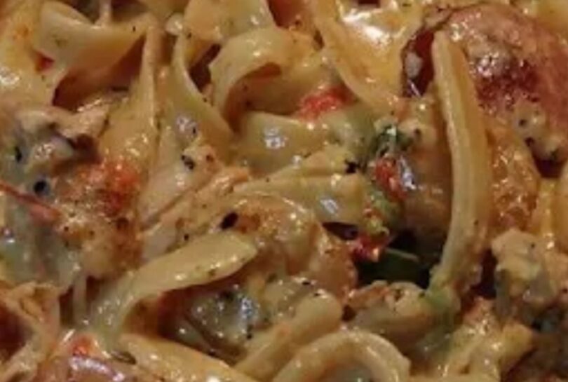 - Return the cooked pasta, shrimp, and sausage to the pot. Toss everything together in the creamy Cajun sauce until fully coated. Let the mixture simmer for an additional 2–3 minutes to meld flavors.