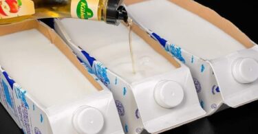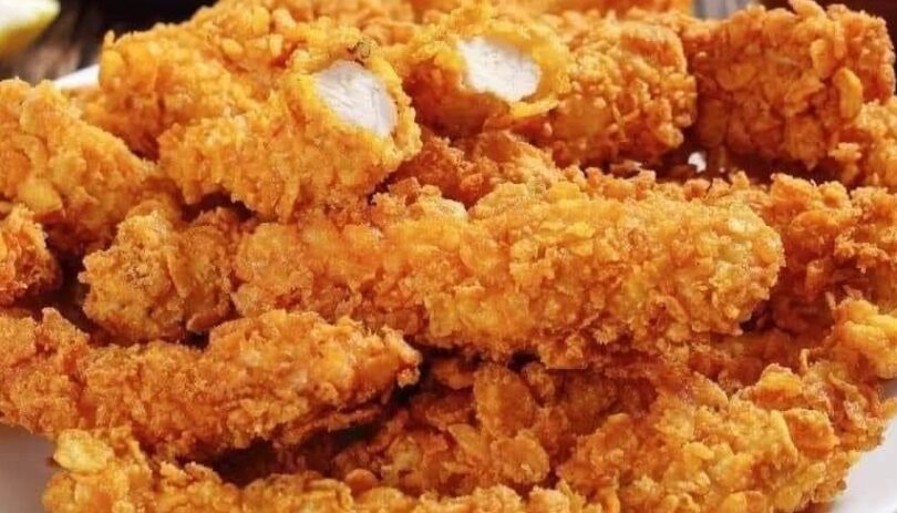2. Then, we pass these strips through beaten egg and then through the toasted cornflakes, which we have crushed a little with our hands.
