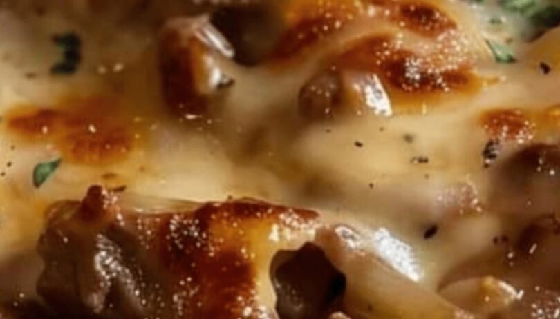 Serve Hot: Enjoy your French Onion Beef and Noodles immediately while warm and flavorful.