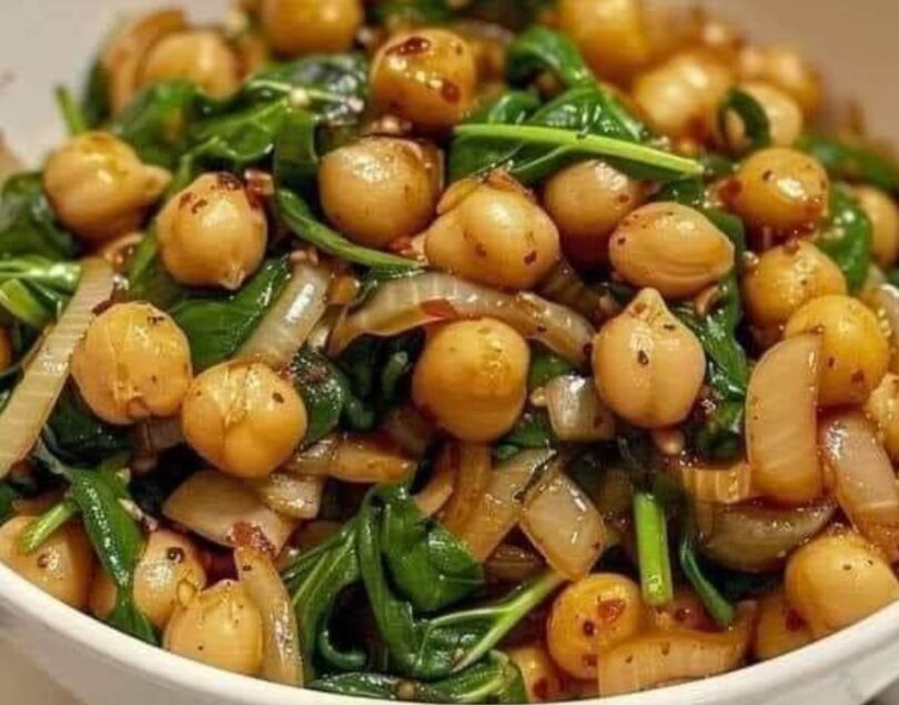 4. Incorporate the chickpeas and spices (cumin, paprika and turmeric). Mix well and cook for 5 minutes, stirring occasionally.