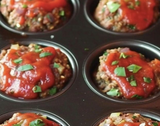 Mix all the ingredients together in a bowl, but only use about ¼ of the tomato sauce/ketchup in the meat mixture. Reserve the rest for the tops of the meatloaf muffins.