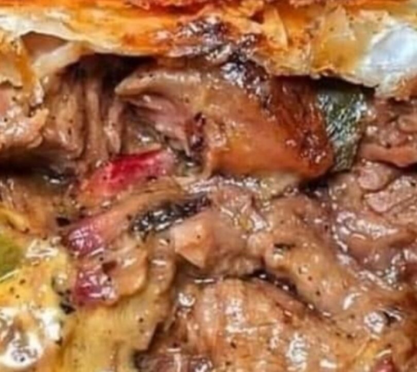 Add the tasty brisket and cheese filling. Add the shredded beef, cheddar cheese, Monterey Jack cheese, dried thyme, salt, and pepper. Allow everything to warm up and mix thoroughly.