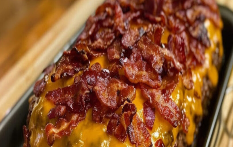 Ground beef, cooked and crumbled bacon, shredded cheddar cheese, bread crumbs, mustard, ketchup, Worcestershire sauce, chopped onion, minced garlic, beaten eggs, salt, and pepper should all be combined in a big mixing bowl. Blend until well blended.