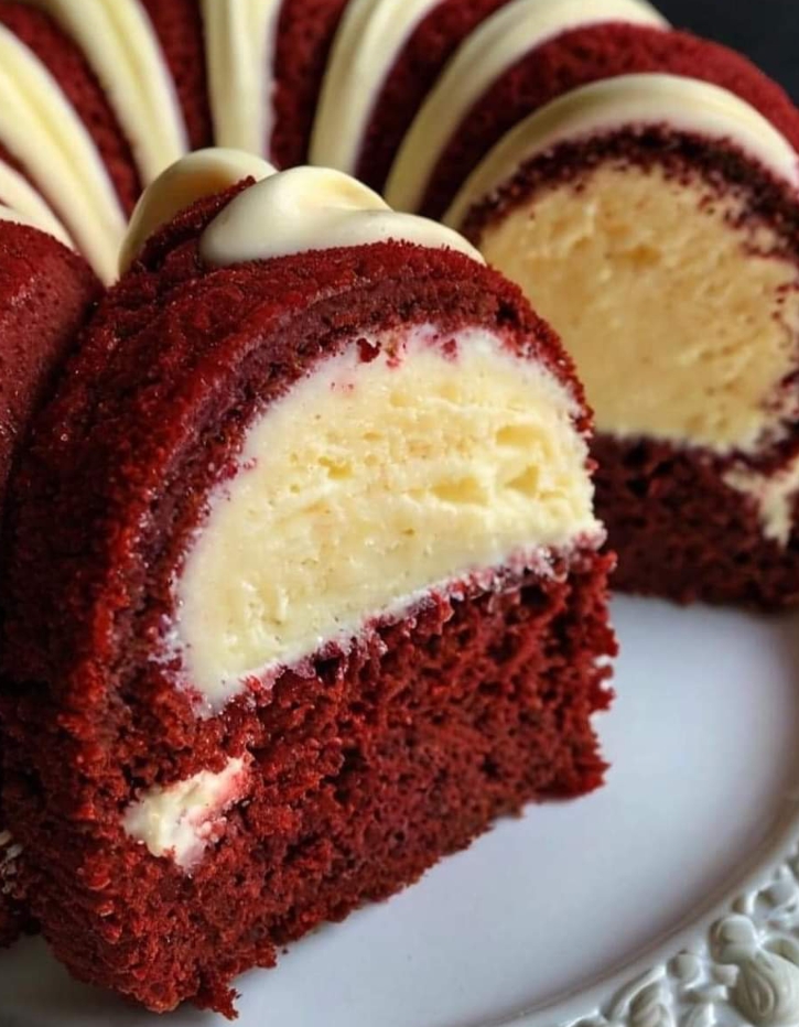 4. Assembly: Pour half of the red velvet batter into the pan. Add cheesecake filling and top with remaining batter.