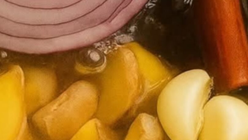 Ingredients:1 medium onion (sliced)1 lemon (sliced with peel)4–5 cloves of garlic1 piece of fresh ginger (about 2 inches, sliced)1 stick of cinnamon5–6 cloves3 cups of water