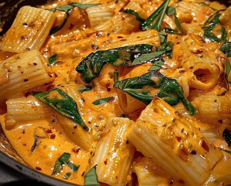 Add the cooked pasta to the skillet and toss to coat it thoroughly with the sauce.