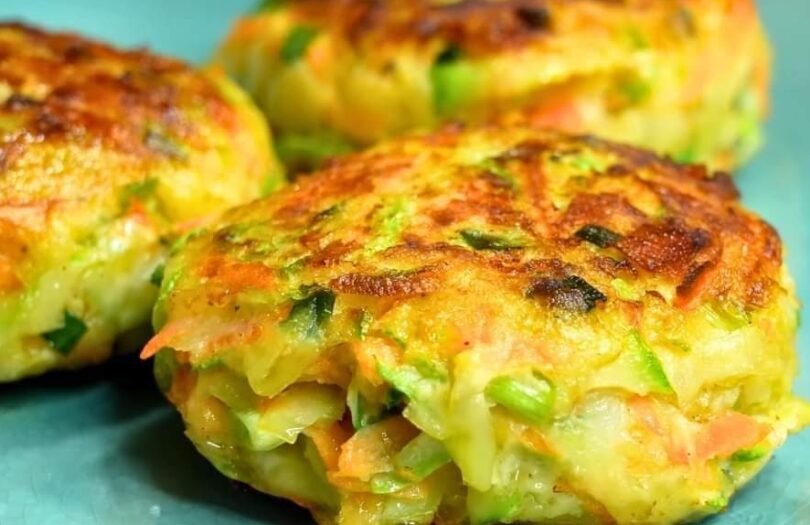Form Fritters: 5. Heat a non-stick skillet over medium heat and add a little oil. 6. Take small portions of the mixture and shape them into patties. 7. Place the patties in the skillet and cook for about 3-4 minutes on each side, until golden brown and crispy.